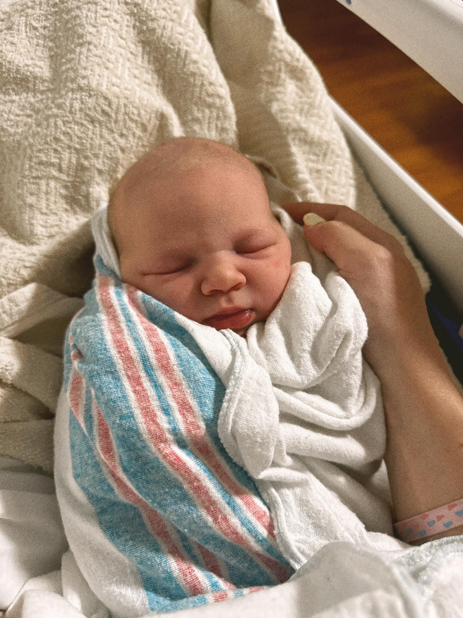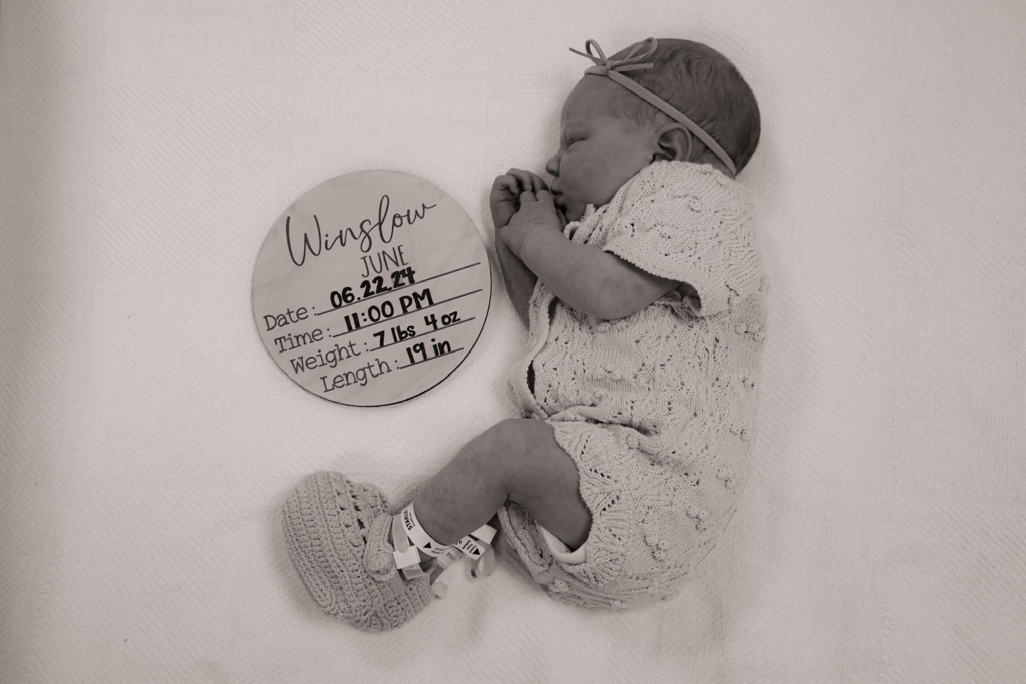 My mom quickly took my headphones off and tried to play the Pushing Baby Out track on our speaker. The midwife lifted my leg and immediately saw Winslow’s head. I pushed one time, and my water broke, and her head was fully out, and with one last push her whole body was out she was born at exactly 11:00pm and while it was incredibly fast and intense, it was beautiful. It is a testament that dilation means absolutely nothing when giving birth and to trust your body 100%.