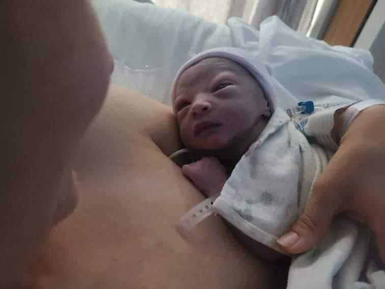 My last birth was a pain-free Hypnobabies birth and this one was pretty darn close as well! I put my earbuds in while listening to Easy First Stage (Hypnobabies main birthing time track), closed my eyes, and went completely in the zone, tuning everything out. I look pretty calm on the outside thanks to Hypnobabies, so I don’t think anyone knew how close I was to meeting my baby!