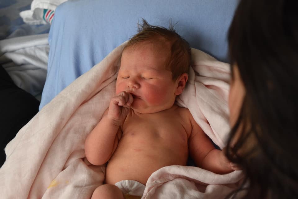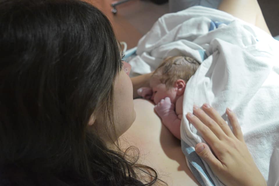 “I enjoyed vocalizing during my intense waves and breathed deeply. Before I realized what was going on, I breathed out my daughter’s head with a “pop.” I was so surprised I even declared “was that her head?!” One more wave and I pushed out my daughter’s shoulders and body. I was so shocked she was already there as I was waiting for things to get a lot harder or take a lot longer. 1 hour after the midwife told me I was 4 cm dilated, and 2 hours after getting to the hospital, she was in my arms!”