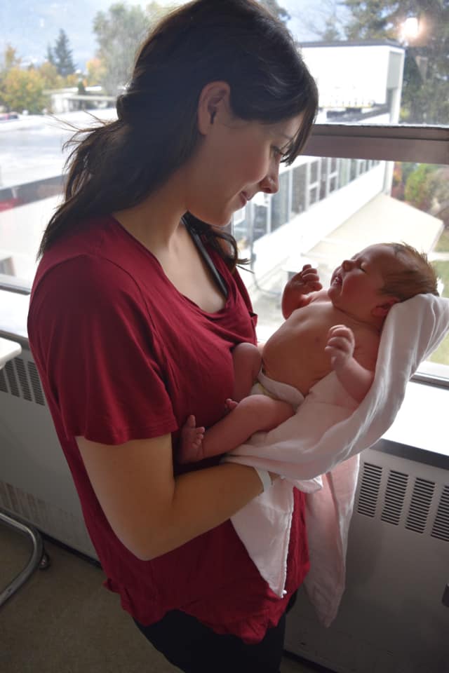By the time we reached the hospital at 10:30 pm my waves must have been about 3-4 min apart and were feeling significantly more powerful. When we arrived, the nurses checked us in and phoned my midwife letting her know that things seemed to be progressing quickly. The nurses checked my vitals and I asked if they could fill up the birthing pool. My midwife arrived at 11:30 pm and asked to check how far along I was before I got into the pool. I agreed to the check and she said I was about 4-5 cm dilated. At this point I looked at my husband panicked, feeling like I wouldn’t be able to do this and said “only 4 cm…?! Why are my waves so close together then??” My midwife reassured me saying my cervix was very thin and elastic and was a cervix that was ready to open.
