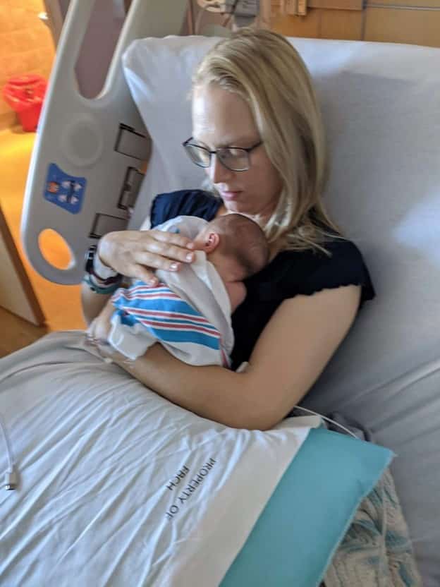 Later that afternoon, I unfortunately developed a hematoma in the incision, so a second surgery was required to repair it. This was actually a very scary experience for me, as it was totally unexpected and unknown. My husband stayed with our son and we didn’t have a chance to embrace before I left the room. The team who worked on me was great and I’m glad they caught it early. But I cried throughout the surgery, overwhelmed with it all – the sounds and feeling all the tugging in my body as they worked. I wouldn’t call it a panic attack, but it was definitely a prolonged anxiety attack. The only thing that I concentrated on was to keep breathing. I also held the nurse’s hand which helped a lot.