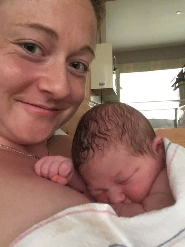 At this point I had never put my mask back on but no one had asked me to put it back on so I kept it off, as this was far more comfortable and everyone else was wearing their masks. After 2 hours around 10:30 pm they transferred us to the much larger birthing room. In this room I was able to be on my hands and knees during my waves next to the bed. I had great difficulty with IVs and ended up getting 4 different IV’s placed in the span of an hour, all whilst my waves were 2-3 minutes apart, again making it very hard to stay in hypnosis. But we were able to dim the lights, have intermittent monitoring, saline lock the IV and minimize interruptions for the next few hours. I must have uttered the words “Peace” (Hypnobabies cue for instant physical comfort) “Relax” (Hypnobabies cue to deepen hypnosis) and “Release” (Hypnobabies cue to instantly turn off) 50,000 times at this point as that was my mantra during waves and it kept me focused.