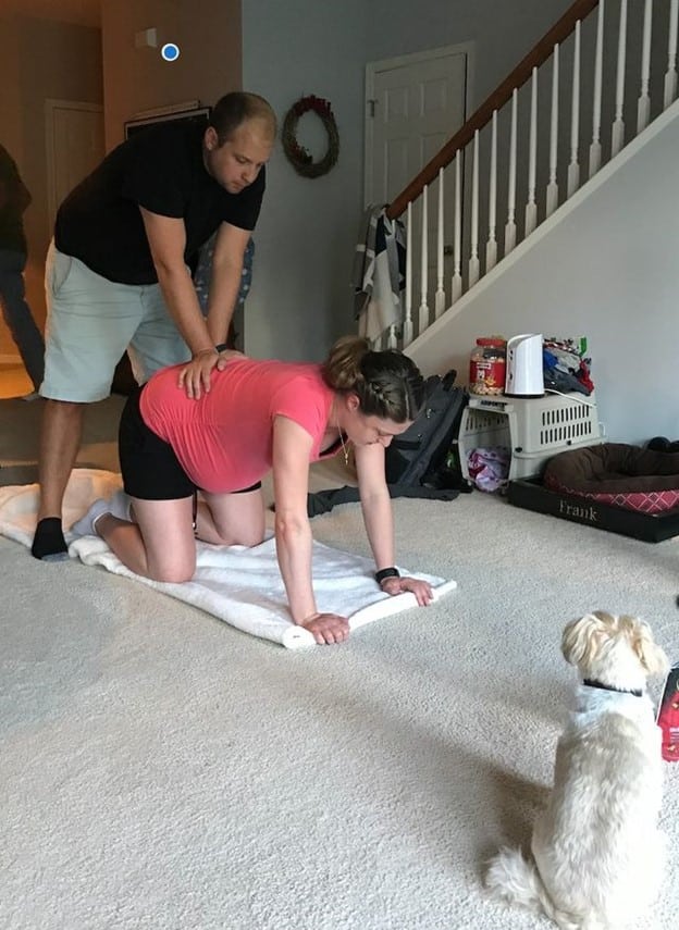 My waves picked back up in intensity and frequency and by 1:00 pm I had my friend who is an OB come and check me. She told me I was 4 cm dilated and 20 percent effaced, and I was devastated. I really thought after 13 hours I would be further along. She recommended we stay home and continue doing what we were doing. For the next 6 hours I continued having waves every 2-4 minutes. My husband was a champ at counter pressure, and it helped me feel so much better.