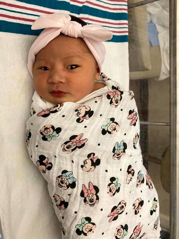 Around 8:30 PM I woke up and my water naturally ruptured. My pressure waves started to intensify from that point. I continued to sit on the birthing ball and listened to Easy First Stage on repeat. I used my Peace cue (Hypnobabies cue for instant physical comfort) every time a pressure wave started. My husband and the nurses also applied counter-pressure on my lower back because that’s where I felt the most discomfort. I also brought a personal fan to help me through the most intense pressure waves. Time went by really fast. What felt like only one hour to me was actually three hours.