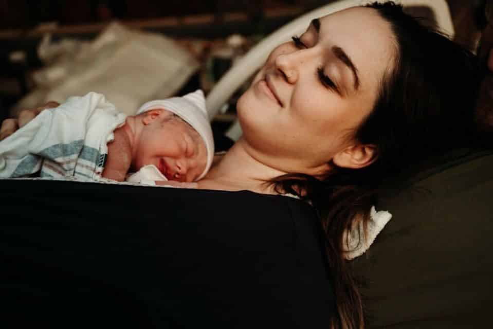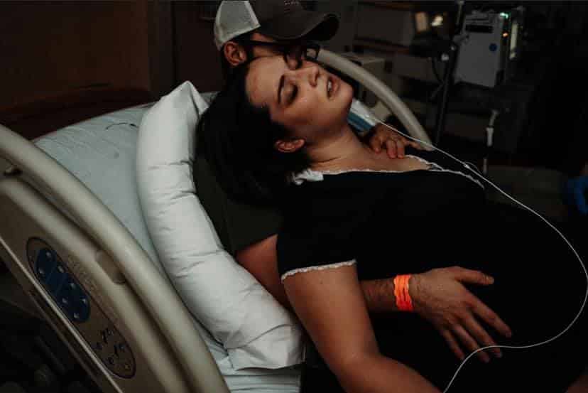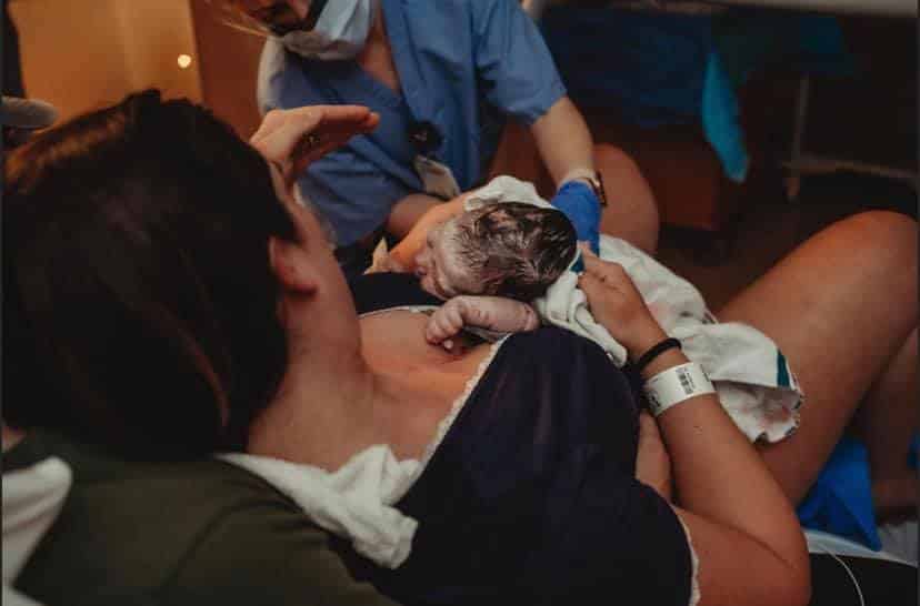 When they say you don’t birth by numbers, they’re serious. I said yes to another check around 8 pm probably? I was at a NINE. My doula suggested my husband sit behind me in the bed so I could melt into him. I never thought I’d push on my back, but that ended up being the most comfortable. My body started instinctively pushing, they checked again, and I was complete, cracking jokes and smiling between waves. Baby girl was born at 8:49pm! That transformation & pushing phase happened so fast and it was the most amazing thing I’ve ever experienced!!