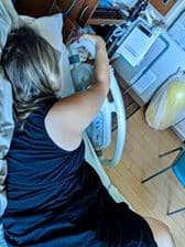 “I spent most of the time on the birthing ball listening to Easy First Stage (Hypnobabies main birthing time track) and Deepening Your Hypnosis (Hypnobabies track for deepening the level of hypnosis) and My hubby was amazing at helping give me with cues to help remind me to relax and stay comfortable.”