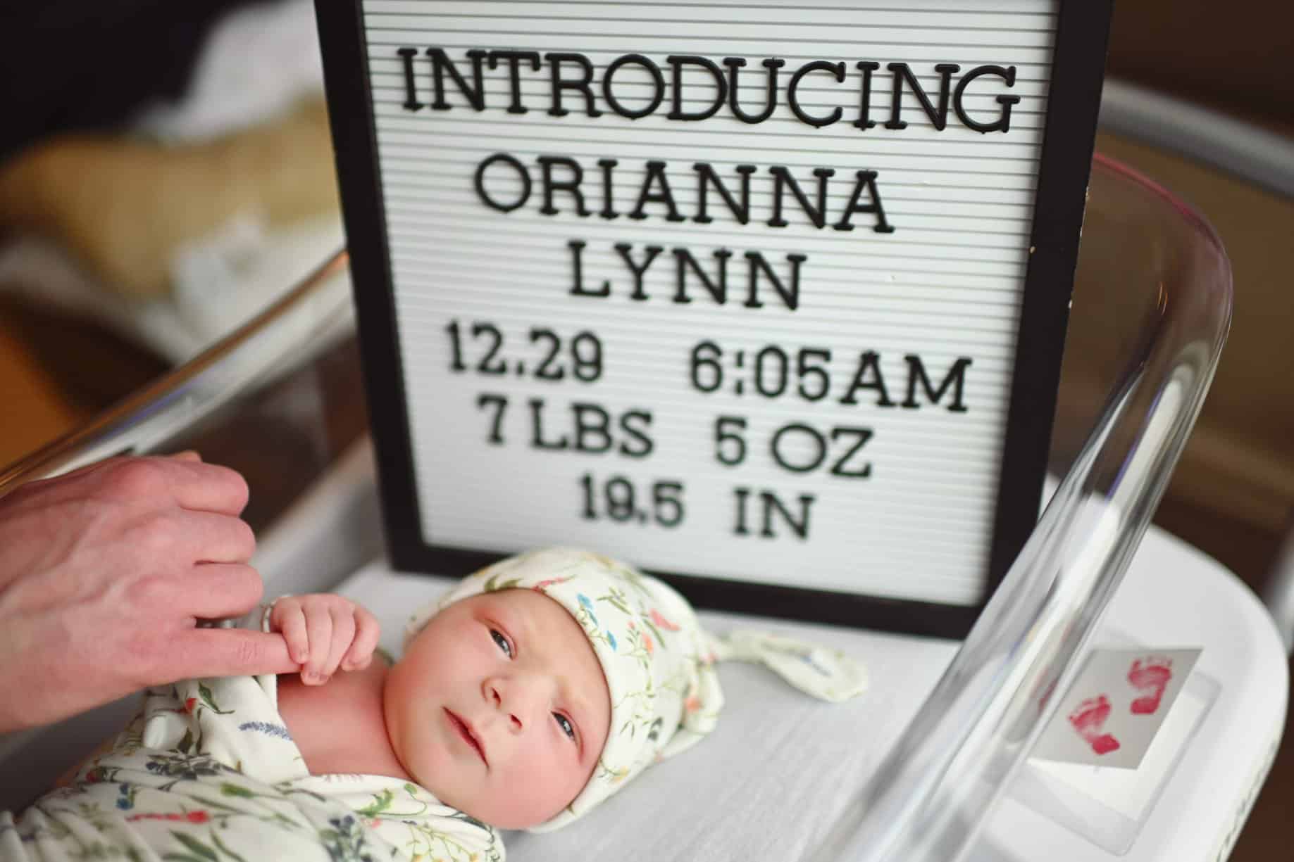 I could not control the sounds coming from my mouth and the FER totally kicked in. I really enjoyed pushing, and I felt like I had to simply assist my body, as it knew exactly what to do. The OB on call walked in at 6:04 AM and asked me to lay on back and I said no (again). I did agree to side-lying and at 6:05 AM my sweet baby girl Orianna Lynn was born!! Laura walked in seconds after baby was born, and our birth photographer arrived a little while later.