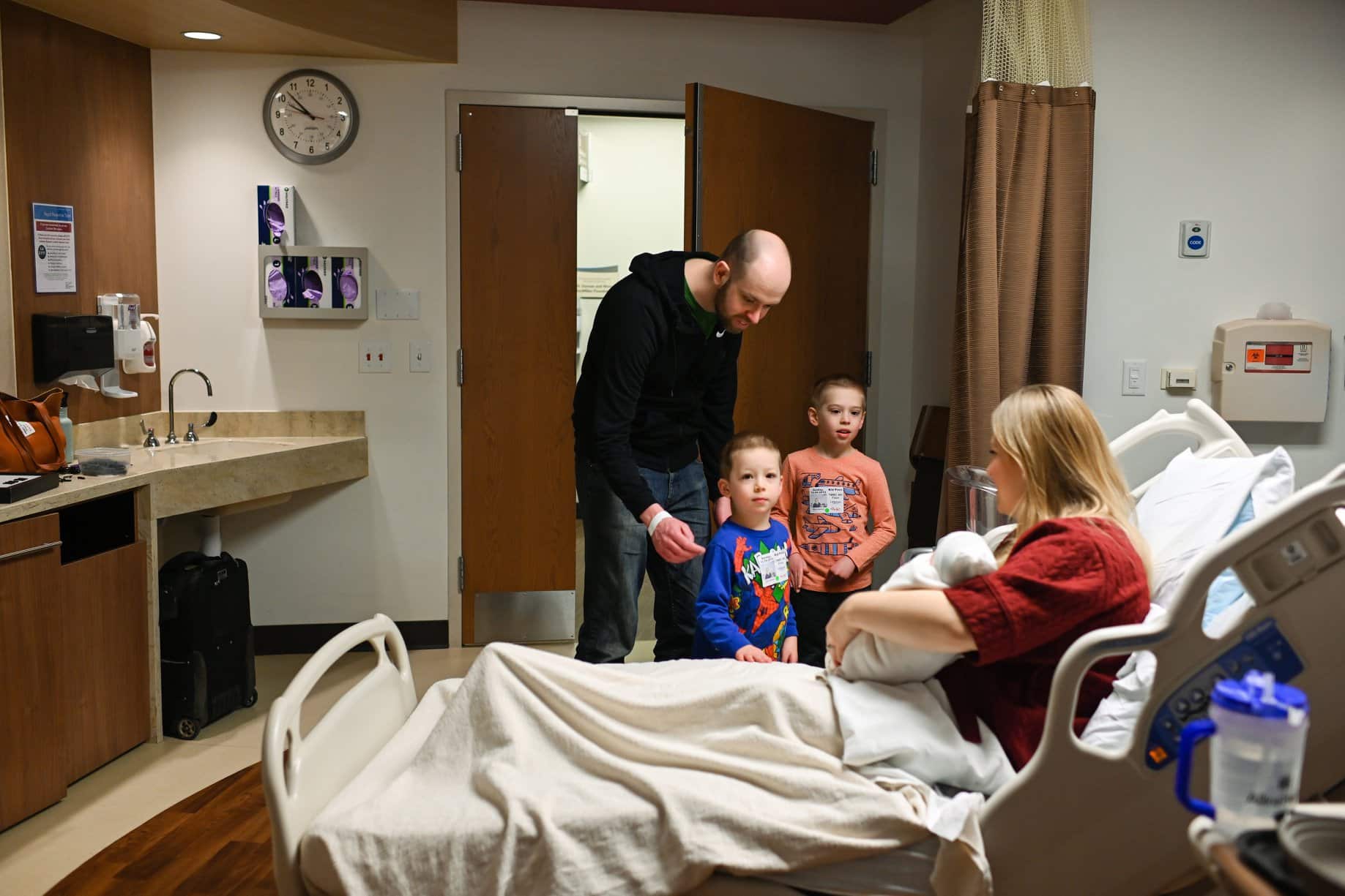 My husband parked our van in the circle drive in front of the hospital and we went up to triage. This is when something shifted. It was about 4 AM. Every single movement I made brought on multiple waves. And they were intense. The triage nurse confirmed my water had broken and tried to get monitoring for 20 minutes but I couldn’t keep still. I was checked but not told the number. I was 3 cm at this time. In my head I knew I wasn’t very far dilated but at the same time, I also knew baby was close. Hard to describe but I did ask if they would admit me and she said yes. I was so grateful.