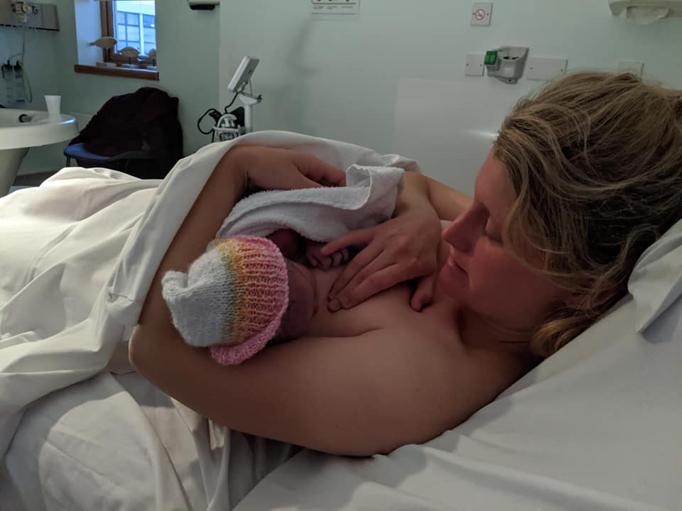 We got to the hospital at 5 am. As soon as we arrived I kicked off my shoes, took off my dress and announced that I was ready to push. My husband put the Pushing Baby Out track (Hypnobabies track just for pushing) on the speaker. The midwife did a quick cervix check, I was at a 10 and complete. They were still filling up the tub so I just stayed on all fours on the bed. The pushing sensation started off gently, and gradually became stronger. I pushed for an hour and a half, it might sound like a long time, but I think it’s exactly what my body needed in order to keep my pelvic floor undamaged.