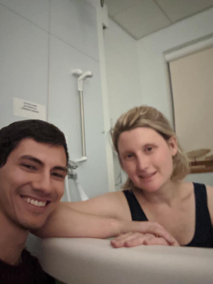Something I noticed was that every hour did only seem like a few minutes, as the tracks say. I lost track of my pressure waves as I didn’t feel like counting, just relaxing. I eventually felt like I needed more support, so I woke up my mom who was staying over. She said my pressure waves were 2 mins apart. She picked up that every time I said Peeeeeeace (Hypnobabies cue for instant physical comfort) I was having a pressure wave. She woke up my husband, he called the hospital again and told them my status, they said to come in, but that unfortunately the birthing pools were all occupied. I chose to wait it out in my own bathtub until they had one available.