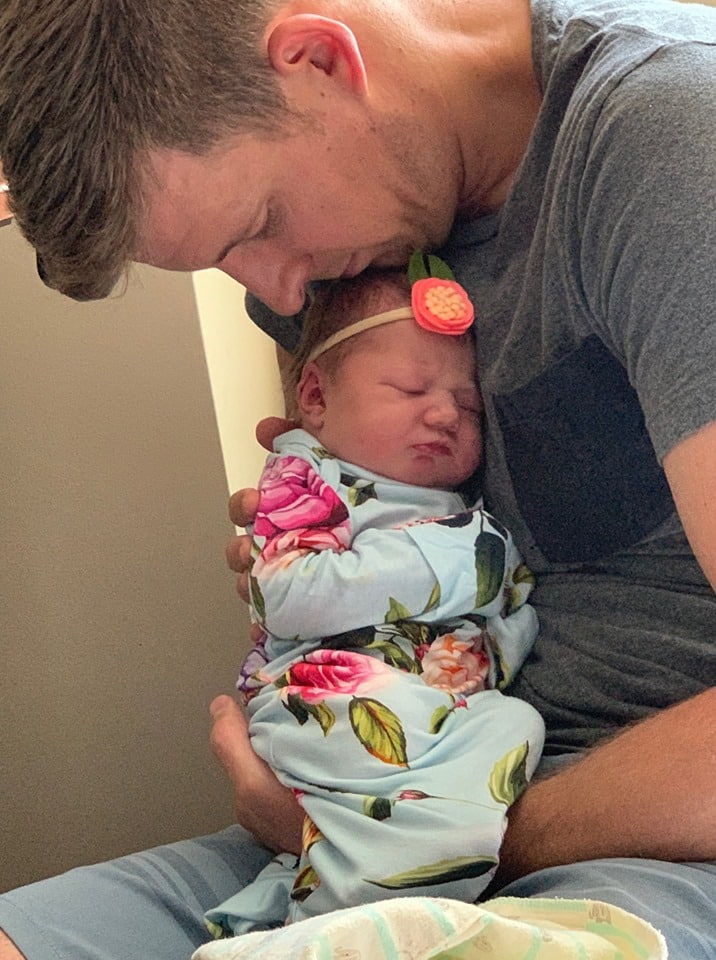 He got the nurse and she asked if I wanted to be checked. My husband told her he didn’t think so, and that I was ready to push already. I told him to grab my leg during my next PW, and as I pushed, the nurse said, “Ok, there’s the head!” She ran to get the doctor. My husband scrambled to get Pushing Baby Out (Hypnobabies track just for pushing) playing on my phone as the medical staff hurried in, bringing what they could in the short amount of time they had. I felt confident and calm asking my doctor to hold pressure against my perineum whenever I crowned. He followed my wishes and after the third pushing pressure wave, my daughter was born at 10:15 pm, after 18 hours of birthing time, just in time for the end of Father’s Day <3.
