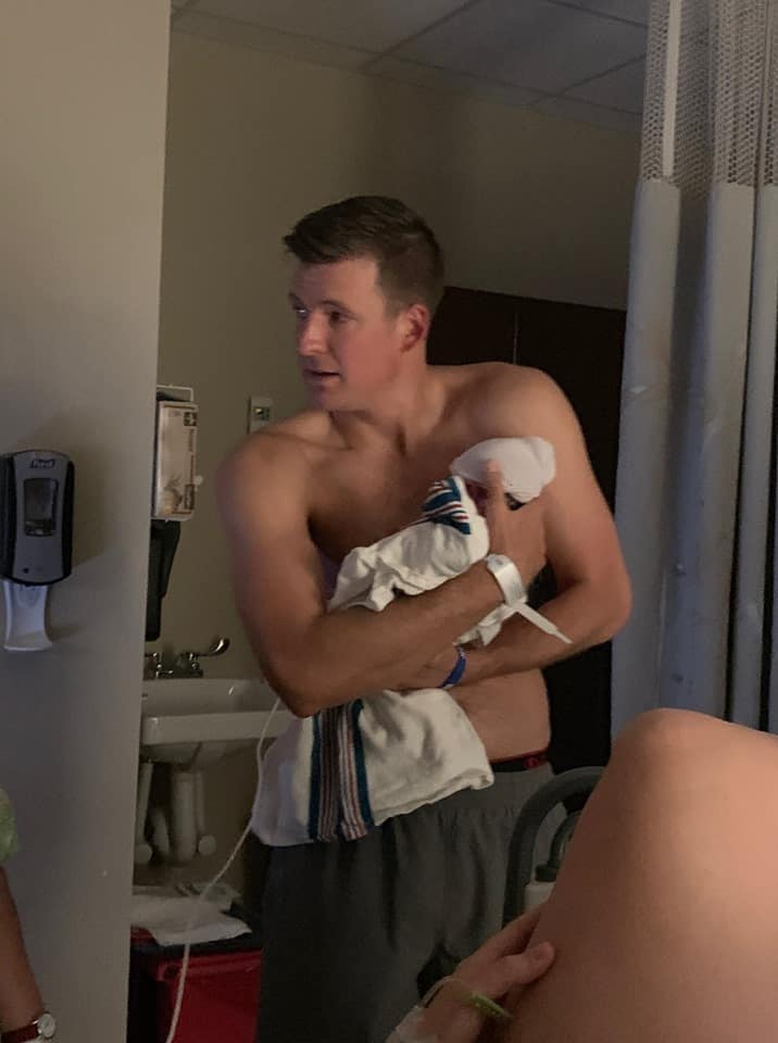 I got pushy right away, and after the PW was over, turned to my husband and asked him to get the nurse because I was ready to push! He was so confused and shocked because I had just been laying there, barely vocalizing. He said he thought things were progressing based off how I sounded but was amazed I was saying I needed to push that quickly. After our incredibly slow day and having seen the difference of me going through Transformation during our son’s birth, he could hardly believe me!