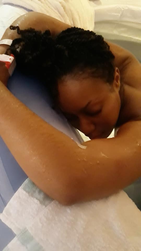 Although the plan was for a hospital water birth, some of that time was spent in the water, but ultimately baby came while I was suspended in a squat near the floor, outside of the tub, held up by my husband’s arms 🙂….for some reason THAT was the optimal position for me.