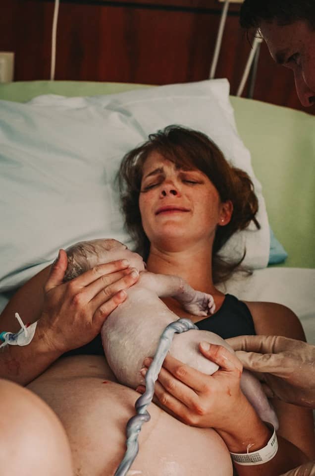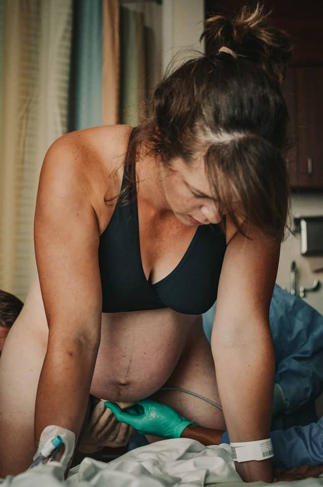 My hypno-doula asked me if I did and I said yes, so she put on the Pushing Baby Out track (Hypnobabies hypnosis track just for pushing stage) on and I did hear it and I think it did help. While pushing, I couldn’t find a comfortable position especially when my son began to crown. I laid down on my side first and when I didn’t feel him progressing, I got on my hands and knees. That didn’t seem to help either so I climbed off the bed and stood up leaning over it and that was the right position as he came out! My husband was able to catch him even after all my changing positions 😆 and told me his gender while putting him on my chest.