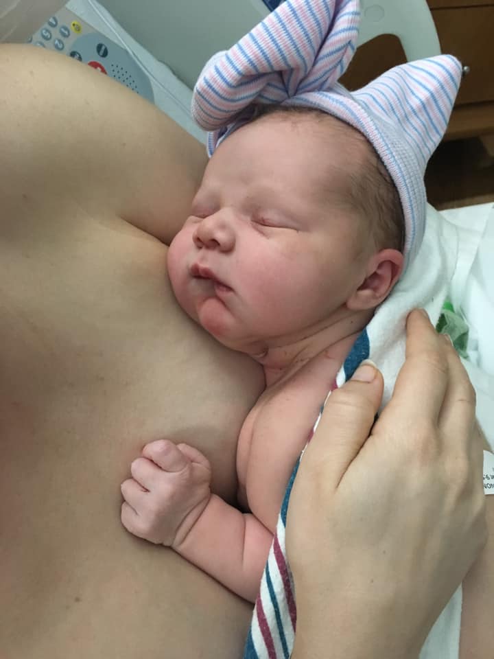 We went to the hospital around 12:30 because I was afraid of getting too dehydrated. I was 4cm. When we finally got into the birthing room Around 3:00 I was so excited. My doula helped me get into different positions in order to keep things moving. At 6:00 I was 6cm and feeling great! With each wave, I would shut off, welcome it, say Open and Peace (Hypnobabies cue for instant physical comfort). With each wave, I would also remind myself that I was getting even closer to meeting my baby and that was so motivating. I was able to talk to my husband and doula casually in between waves while in center. All while listening to hypnosis tracks.