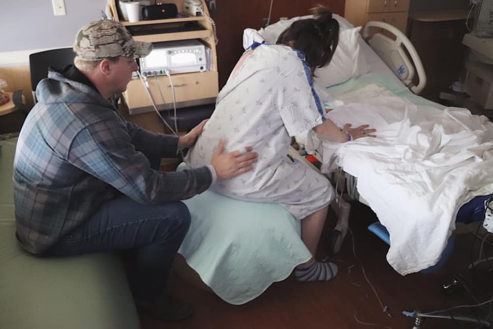 After starting the Pitocin, waves started picking up, 1 every 3-5 min. After an hour, they increased the dose and things went fast from there!! I started having powerful waves and was groan/humming through them. I did not think I was very close though, until, while sitting on a birthing ball, I felt a powerful wave and something large! I told my husband and doula, “I either need to poop, or that’s a head!”