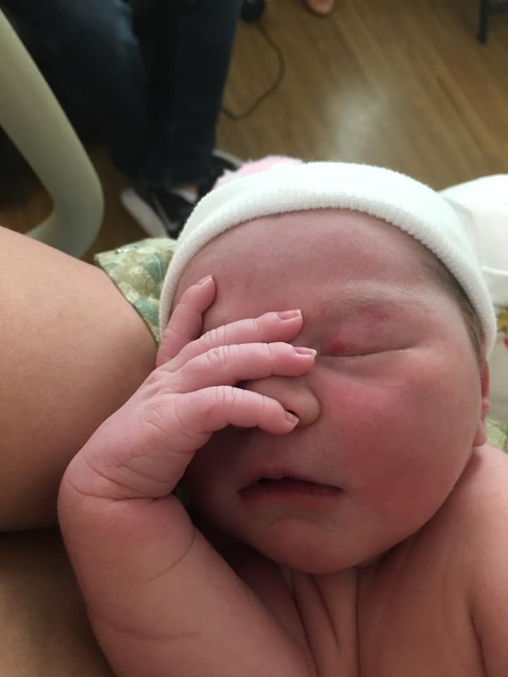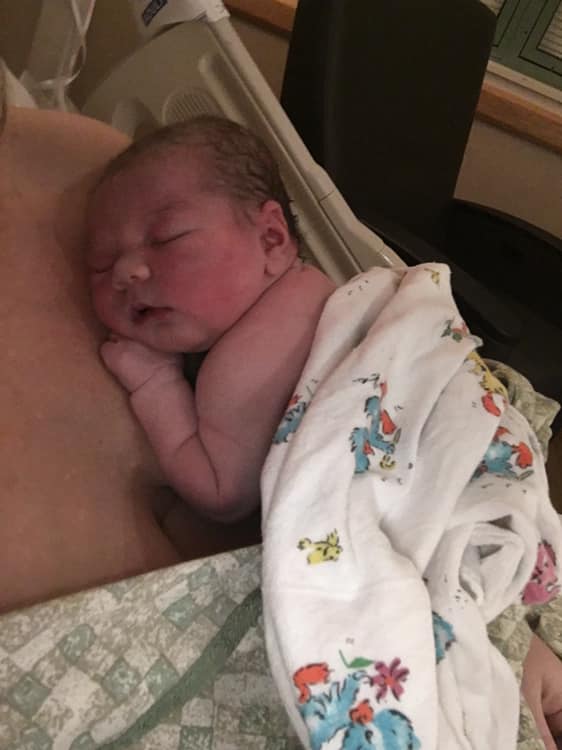 Following the epidural, I was 5cm/60%. I rested and listened to hypnosis tracks until 3:45 when I was checked again and found to be 6cm/60% and Scarlett was at +1 station. I again rested for about 30 minutes and began feeling a little bit of pressure. At 4:21 pm I was 10/100%/+2 and began to push. Everything happened quickly and I didn’t get to listen to Pushing Baby Out (Hypnobabies hypnosis track just for pushing). Even with a 30-second shoulder dystocia, Scarlett Kate was born at 4:31 pm on 3/26 very easily and comfortably. She is doing wonderfully, we are so happy and excited for her to meet her big sister and join our family.