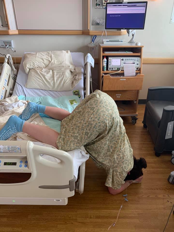 Because I had eaten, I would have to wait 8 hours for surgery. During that time in the hospital, I did some Spinning Babies techniques (until the doctor became uncomfortable and asked me to stop), used heat and ice packs, and finally remembered to listen to the Turn Your Breech Baby Hypnobabies track. During the track she was moving like crazy, finally settled down, and I felt a pressure wave (Hypnobabies word for contraction)! It turns out, she had moved and was head down immediately prior to surgery. We decided to proceed with induction rather than risk her turning again, and I was moved to a birthing room.