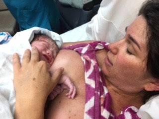 At about this time Lorie was becoming concerned as baby’s heart rate was dropping during pressure waves (Hypnobabies word for contraction). She let us know that she was going to ask the doctor to come in. Dr Marks came in and observed the situation as I continued to push. It was decided that she would use the vacuum to assist baby and me. Even with the arrival of the doctor and other additional people, the room stayed very calm and focused. After several pushes, I remember hearing Nicole say ‘Abby, you need to do this- NOW.’ I knew I had to give it all I had and bring my baby out into the world safely- I knew I did not want any additional medical interventions and I was determined to succeed.