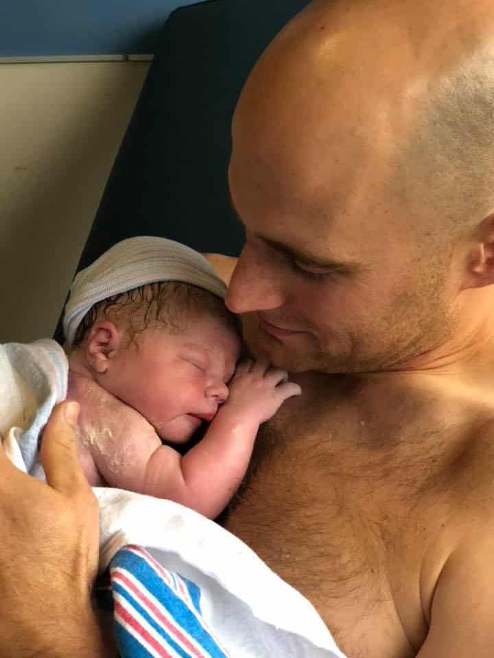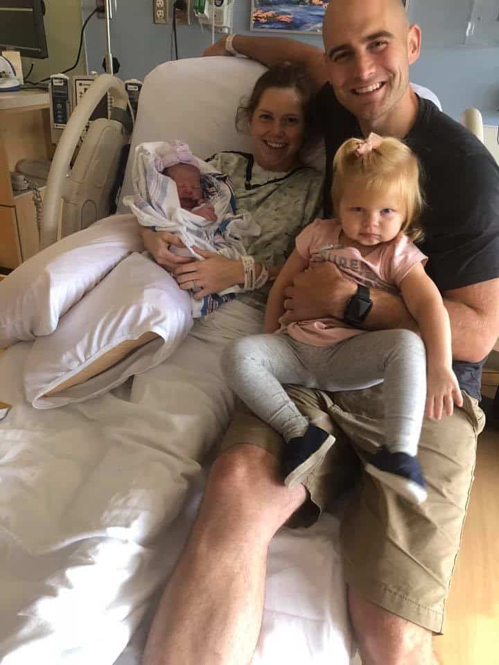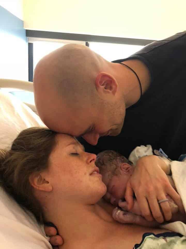 Kelly held my baby up for me to see, and I could see my big, healthy baby with a bluish, cone-shaped head. I heard my husband say, “It’s a girl!” and then she was placed in my arms. I snuggled her against my chest, in disbelief that I had been able to birth a baby this big and feeling more exhausted and sorer than ever before in my life. After a few minutes of enjoying snuggles, I had a quiet side conversation with my husband to confirm the name, and we happily announced that our beautiful rainbow baby’s name is Lela Marie. We turned to my sister, whose birthday it was, and we asked her to be Lela’s godmother. With a smile and tears in her eyes, she said yes.