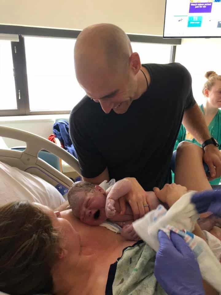 Around midday, I felt like my baby had descended, and I felt a lot of pressure down low. I asked the nurse to have my midwife come in and check me. I was 8 cm dilated at this point and the baby was in a good position, so I asked her to break my bag of water to relieve pressure and help things progress. I felt some relief after this, and after a short time of continually stronger and closer together pressure waves, and using my hypnosis, I started feeling pushy. I asked my midwife to come and check me again, and she found that I was mostly dilated.