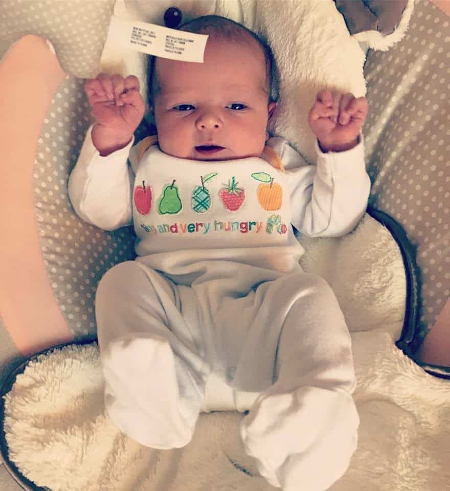 I got on the bed on all fours, pushed three or four times, and baby was out! I couldn’t believe it — I had pushed for three hours with my daughter and eventually had to have a forceps delivery as she wasn’t coming out on her own. This time, baby was born 19 minutes after I checked into the hospital. He was much calmer when he was first born than my daughter was, and I was able to hold him skin-to-skin and enjoy him right away.