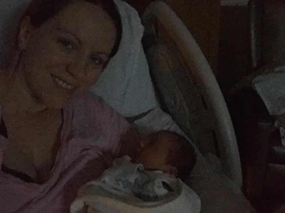 Once I arrived they got me all prepped and were commenting on how calm I was. I knew I would have an easy and relaxing birthing time (Hypnobabies word for labor)! I was actually already 4cm when I checked in around lunch time, which surprised me. My hubby arrived around 2 pm, I was given Pitocin and things were going super smooth. I was so comfortable with my headphones listening to my hypnosis tracks (Easy First Stage which is Hypnobabies main birthing day track, Deepening to deepen hypnosis and Birthing DayAffirmations), I just relaxed in bed. Eventually I decided to sit on the toilet (dialation station, am I right? Haha).