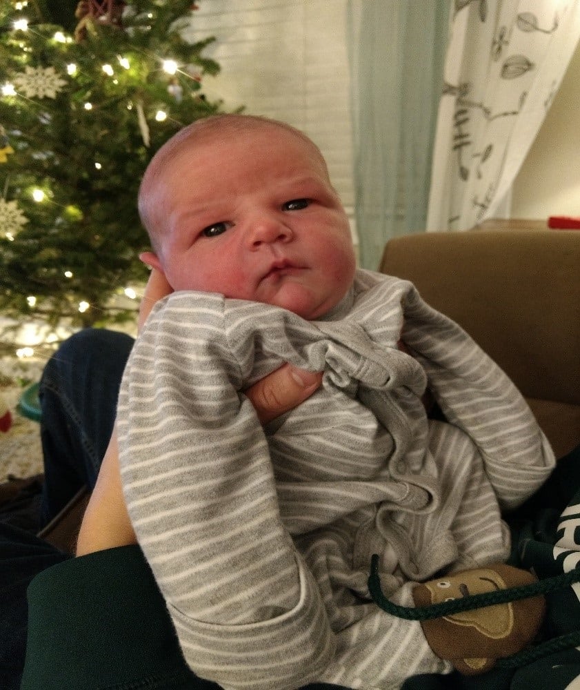 A week after his birth I can really see how much better your body can recover from a non-medicated birth. We are so very happy with the arrival of our Asher. He was 9lbs 2oz and 21 inches. He has, according to the midwife, a head on the larger side and I did have tearing but it was minimal. I’m healing very well despite the busyness of the Christmas season.”