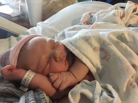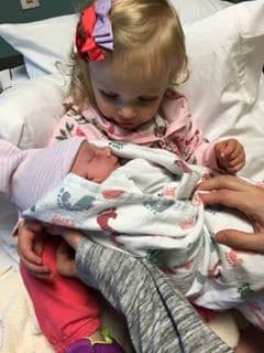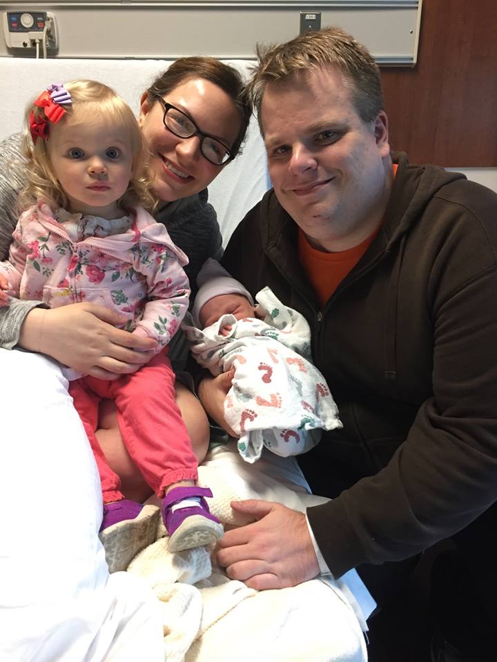 We cuddled and nursed for about 2 hours. We found out that she was 8 lbs, 3 oz and 20 inches. As an aside, during both of my births someone has said to me something along the lines of “you’ve got a big baby in there!” and both of my girls were completely average size (Grace was 7 lbs 9 oz) so don’t listen to any of that! I texted my Mom and brother a picture of the baby to let them know we were okay and they were SHOCKED. They thought it would be a text saying we settled in the room and couldn’t believe she was already here based on how calm I was when I left the house. I later found out I was already 8cm when I arrived at the hospital.