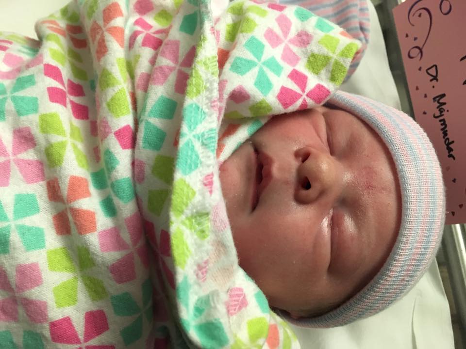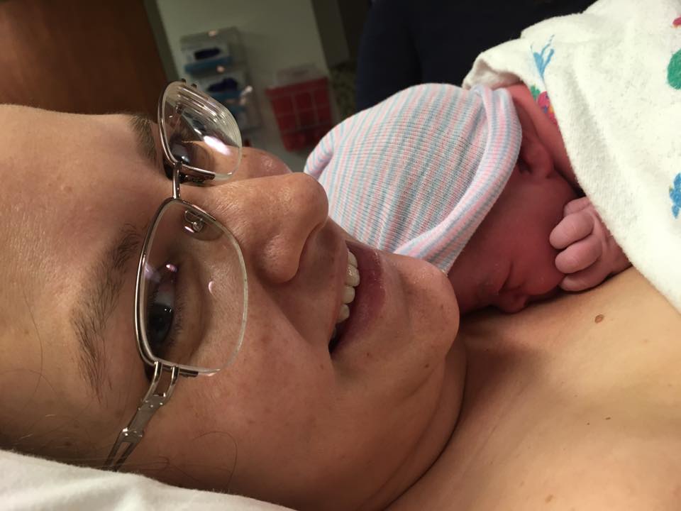 By 10pm we arrived at the hospital. As we walked in to the lobby I had another wave and was very surprised it was a pushing wave! This was the first time I felt a little scared, only because I thought there was no way I was fully dilated so soon and I didn’t understand what was happening. I thought I should fight the urge but I decided to just go with it and listen to my body not my head. I knew I could trust my body! I had another pushing wave in the elevator, and one in the wheelchair. In the birthing room I got up on the bed and had another pushing wave as the nurses tried to fit me with the monitor; I’m not sure they ever got it on! The very next wave, I said something about her coming out. Suddenly there was a big gush as my waters broke, then they told me she was crowning and then to push her body out, then at 10:11 someone said “Look at her!” and my perfect baby was laid on me! As I pushed her out I was saying out loud, “It’s stretching, it’s stretching” to remind myself that it was just a powerful stretching sensation. I’m sure the nurses thought it was an odd thing to say but it helped!