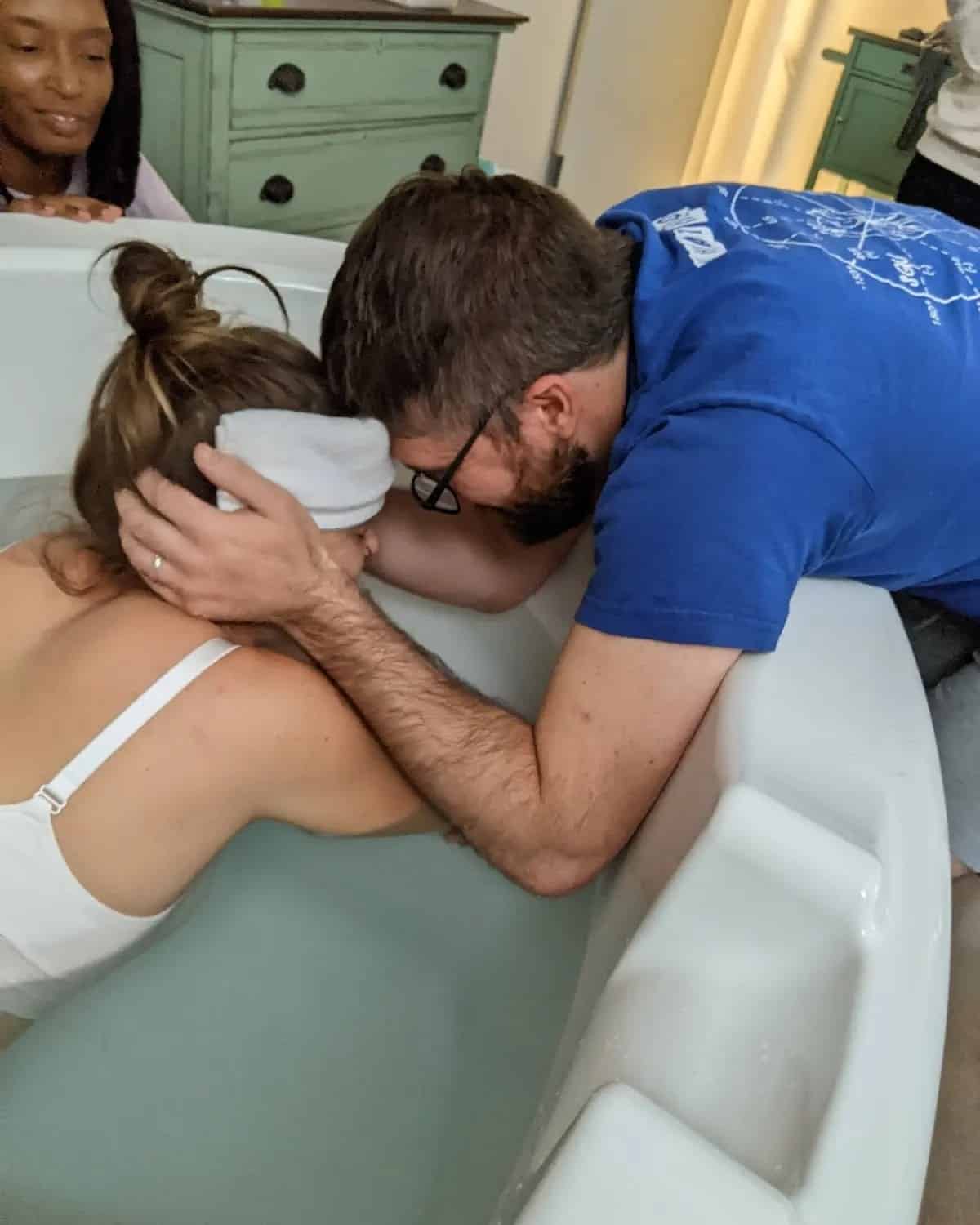 3:00 am I told my husband I felt like it was time for my doula to come. I got back in the tub feeling like it was the most comfortable place with my waves becoming more prominent in my low back.