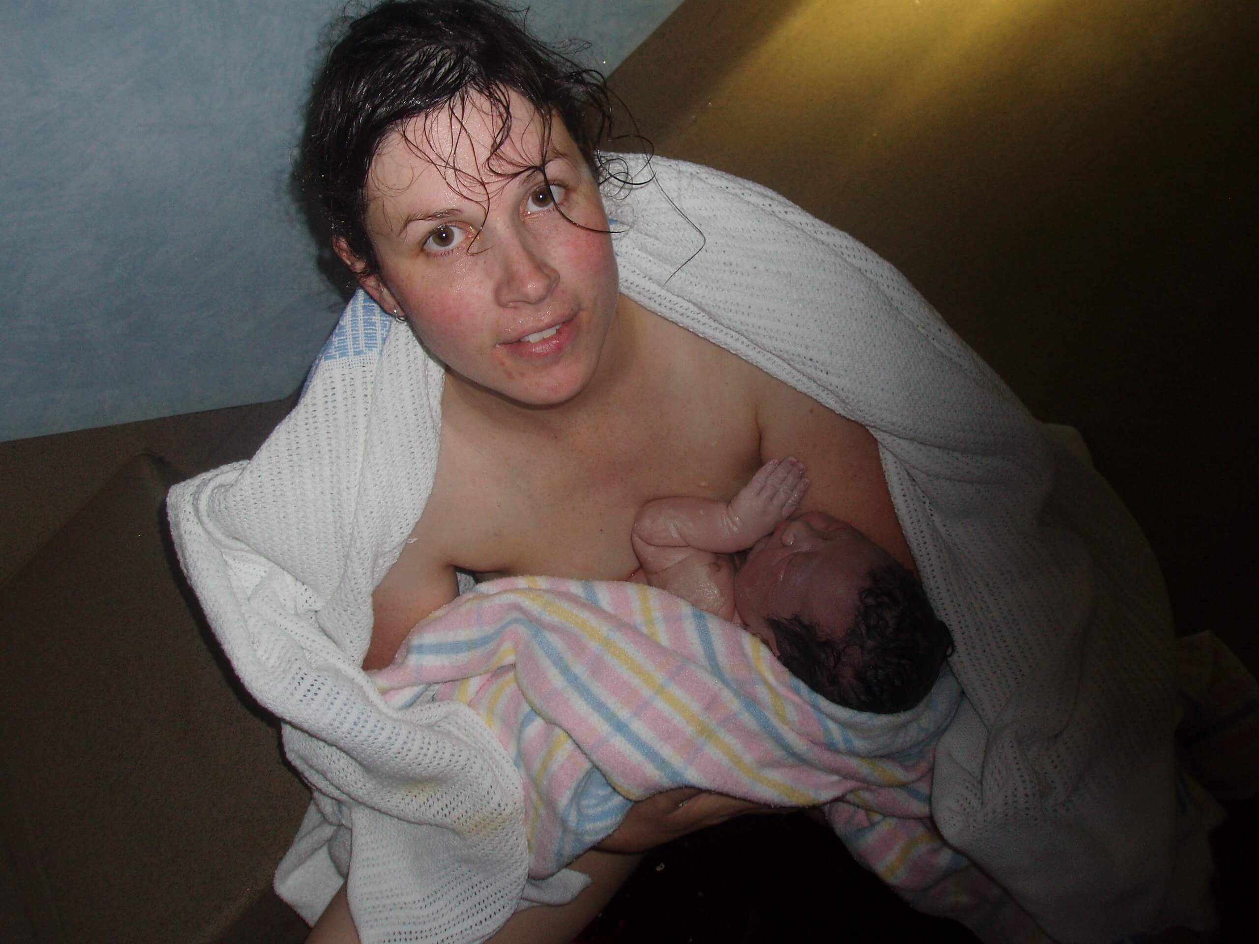 My husband got around to the back just in time to take over from the midwife and catch our son. Instantly, I was turning around and my husband was handing our son to me. It was a magical moment.