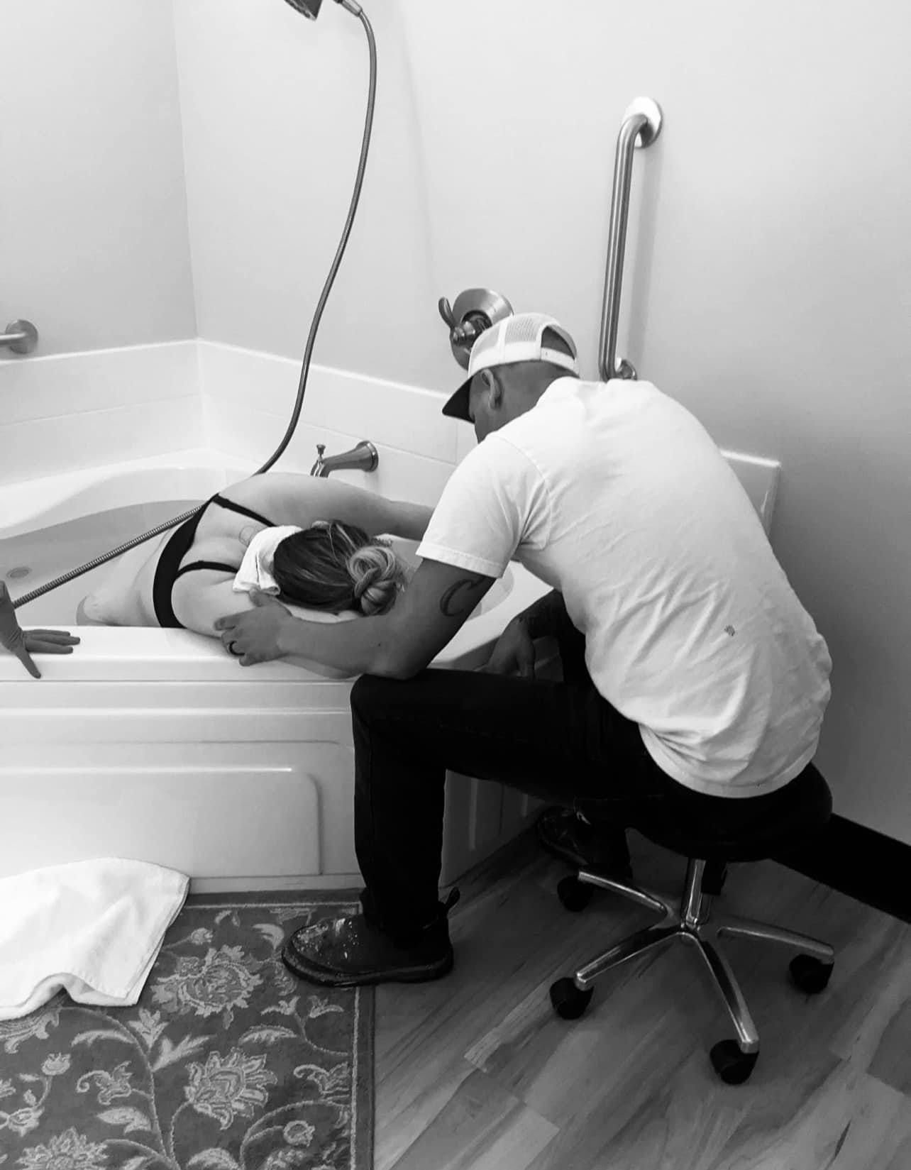 It was 12:32am at this point and while I was in the shower, I had my first birthing wave (Hypnobabies term for contraction) – I was SO excited because in my gut I just knew that’s what it was, and that baby was going to be arriving soon! I stayed in the shower for about 30 more minutes just laughing and talking with my husband about how excited we were with very mild birthing waves.
